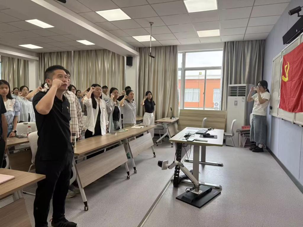 重温一次入党誓词,永葆入党初心。6月10日上午,毕业生党员在公司党委书记陈灵强带领下,面向鲜红党旗庄严举起右拳,重温入党誓词。“我志愿加入中国共产党……”铿锵誓言回响会场,字字千钧激荡初心。仪式现场庄严肃穆,毕业生党员神情坚毅,以铮铮誓言回溯入党承诺,强化党员身份认同与责任担当。在离校前这一特殊时刻重温誓词,既是对理想信念的再淬炼,更是奔赴新征程的再动员。党员们纷纷表示,将永葆政治本色,把誓言融入未来岗位实践,为实现中华民族伟大复兴贡献青春力量。