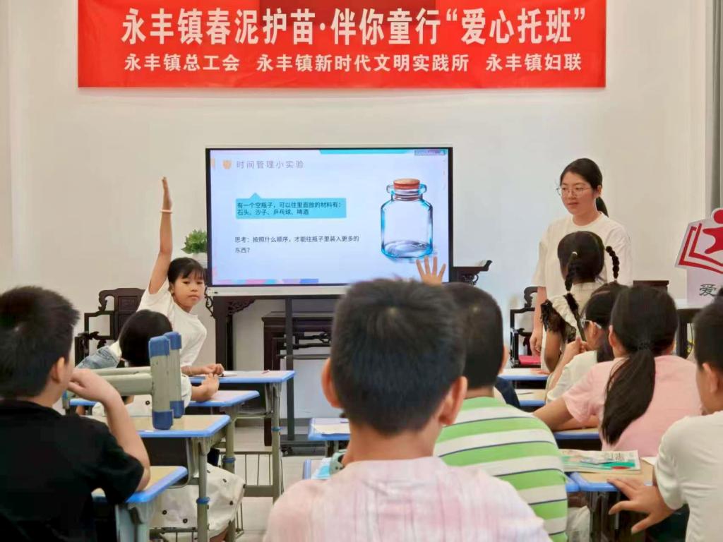 7月15日,阳光洒满永丰镇的每个角落,“春泥萌芽”实践队精心筹备的趣味小课堂热闹开课。孩子们与实践队员围坐一堂,在欢声笑语中开启了一场知识与创意交织的学习之旅。