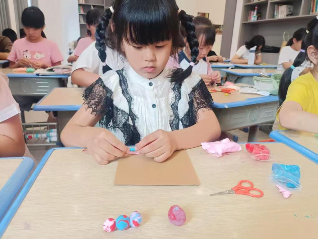 孩子们积极制作粘土甲骨文